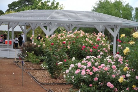 UGC Rose Garden and gazebo that sits along the path of peace offering tranquility and beauty to visitors.