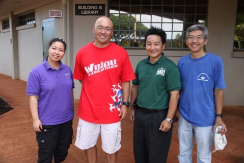 (From left to right) Michelle Itsuno, Hawaii Jaycees Executive Vice-President, Principal Troy Takazono, Waiau Elementary School, Patrick Tomiyasu, past President of the Hawaii Jaycees, and Breene Harimoto, Pearl City Community Association Board Member.