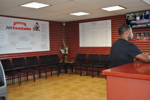 Pearl City's new Flagship FastLube located at the Pearl City Shopping Center features a comfortable waiting area with HD TV.