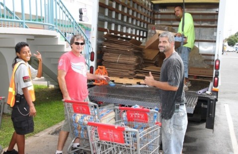 Pearl City Shopping Center Maintenance Manager, Ken Williams and his crew pictured unloading the last few loaves of sweetbread near American Savings Bank on Thursday.