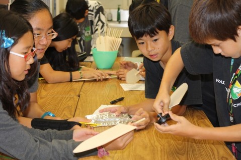 Washington Middle School students (left to right): Sarah Kwak, Linda Li, Lucy Le, Kenso Kume, (Lucy & Kenso in background) Rylan Yamada, Dinico Coronado in Becky Fardal’s 6th grade science class.