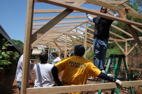Volunteers from the Pearl City community and Military on Oahu came together on Saturday, April 27 to assist Pearl City Elementary School staff and students in the construction and development of the school's new Hydroponics and Aquaculture Center.