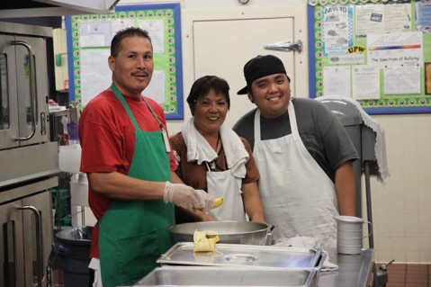 Lehua Elementary School cafeteria crew pictured hard at work on Friday during the Lehua Volunteer