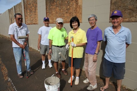 Pearl City Lion Dexter Aoki serves as the graffiti project coordinator. Mana Loa-Nimitz Lions Club President Warren Hiromoto coordinates his club efforts and membership participation with each anti-graffiti painting project. Support for much needed supplies is generously donated by the City & County of Honolulu and local home & garden supply businesses. The Lions also have a strong community based relationship with the Honolulu Police Department.