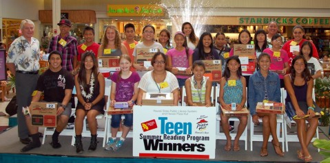 State Librarian Richard Burns delivered the opening remarks to a large audience that included the teens with their parents, family members and relatives, and interested shoppers. Lina Girl, co-host of the "KCCN FM 100 Morning Drive Show," emceed the popular event for the second year-in-a-row. Award-winning teen sensation Haley Michelle Kagimoto, First Place winner of "Brown Bags to Stardom" and "Hawaii Stars" competitions, and Second Place winner of the "National Grammy's Songwriting Competition" (teen division), presented a special musical performance to kick off the annual summer reading program-Oahu finale. This year, nearly 3,200 teens statewide participated in the annual HSPLS Teen Summer Reading Program which encourages reading and strengthens reading habits. Collectively, these teens read nearly 24,000 books.