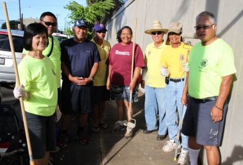 The Pearl City Lions led the charge in their latest community service project efforts on Saturday, July 27 that tackled the graffiti and overgrown landscaping at the corner of North King Street and Houghtailing Street in Kalihi fronting Farrington High School.