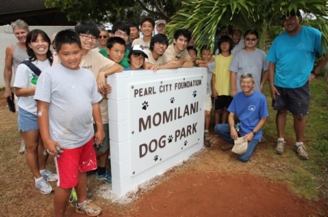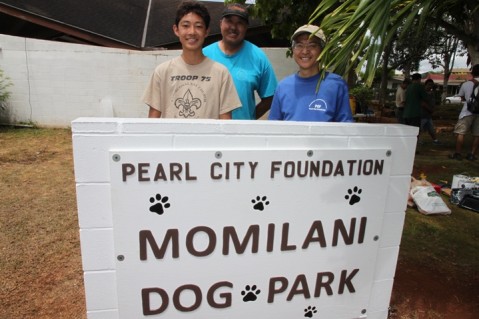 The dream of opening a dog park at the Pearl City Foundation's Momilani Community Center in Pearl City took a leap forward on Sunday, July 28 as the Boy Scouts from Pearl City's Troop 75 completed a two week project that included the construction and painting of the new dog park sign and existing Momilani Community Center signage.