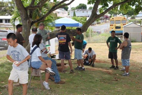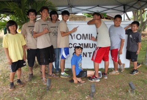 Troop 75 Ohana take a break in the soon to be Momilani Dog Park grounds located at the Pearl City
