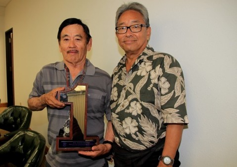 Ed Nishimura is pictured with former Pearl City High Special Education teacher Bert Lum.
