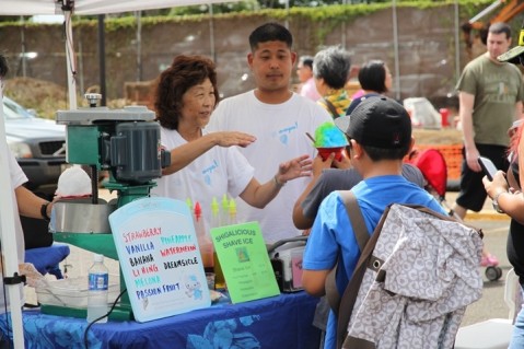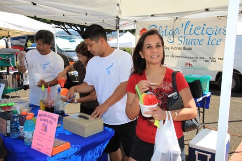 "We've been in business for five years," said Jill Shigano. "So far the Leeward Farmers Market has been good for us. We sell basically shave ice and drinks. Our favorite flavor is Rainbow. People also like our Dreamsicle, Melona flavors.