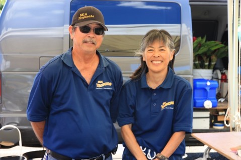 SKA Tropicals owner Stanley Asato is pictured with Janice at the Leeward Farmers Market.