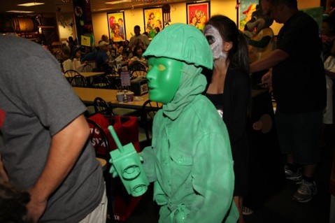Judging for the costume contest started at 8:00am with long lines forming outside Chuck E. Cheese Restaurant by 7:15am. Student athletes representing Pearl City High School's Athletic Honor Society (AHS), along with their advisor/assistant athletics director, Mr. Michael Pang, served as costume contest judges and score tabulators. Mahalo to the following PCHS AHS student athletes: Joen Tominaga, Trudi Eltagonde, Taylor Ganeko, Megan Ramos,Tanner Tokunaga and Kristian Vaana-Kikuyama.