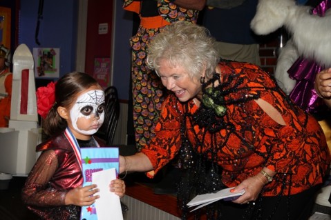 Sheri Rolf congratulates another "scary" winner.