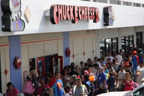 "This is just an awesome day full of fun and just a great time for the families to get together and put their children on center stage,"said Rolf. "What a fun time for the merchants to see the kids going "trick or treating" through the center. And what a time for the families to really honor their children, and their children to feel that pride of "I'm on stage in front of these judges". Also, a big shout out to the Pearl City High School Athletic Honor Society for their judging again this year. That takes a lot of courage to stand in front of all of these adorable little kids and judge them. We're also so grateful to the team that checks the kids in a registers them and can dedicate their Saturday morning to us. Irwin, our Hawaiian Superman, he's been here for years and years and years. Thank you to the community for coming out, and the merchants for sponsoring this. All over it's a great day. I have to say a huge mahalo to Chuck E. Cheese. To Jodie Hasche and her team here, they're awesome. Also, to Chuck E himself."