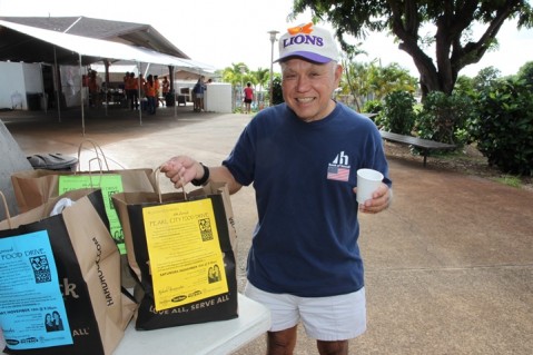 "There are approximately 700 bags that were delivered to Pearl City homes which are about almost double the amount that we usually do, " said Pearl City Food Drive co-organizer Yumi Laney. "This is the fun week being able to pick up all the bags. We have a lot of volunteers helping out from the Mana Loa-Nimitz Lions Club and the Key Club from Pearl City High School who helped out last week. Also, we have help from the Pearl City Community Association. We really enjoy doing this. It's a group effort, and we can't do this by ourselves."