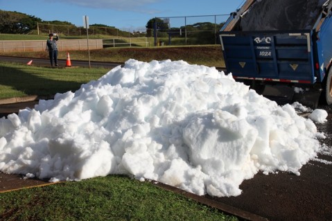 12 tons of snowy fun was delivered to Momilani Elementary by Mr. Verne Santos, owner of B&C Trucking.