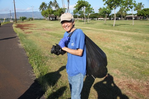 Community volunteers came together bright and early Saturday morning at Blaisdell Park in Pearl City to clean and beautify the Pearl Harbor Bike Path and shoreline. A group of about twenty volunteers led by Honolulu City Councilman Breene Harimoto, who represents District 8 (Waipahu – Pearl City – Aiea), split up into two work crews to clean along the bike path from Blaisdell Park, heading east, to Cutter Ford in Aiea, and in the westbound direction to the Hawaiian Electric Company Waiau Power Plant.