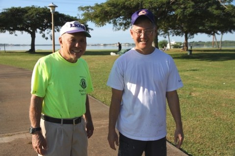 (left), and Pearl City Lions Club Board Member, Dexter Aoki (right), take a break for a photo at Blaisdell