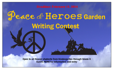 The Honolulu Rose Society (HRS) is currently sponsoring two writing contests for Hawaii Elementary School children in K to 6th grade to celebrate the establishment of two new themed rose gardens (“Peace Rose Garden” and the “Heroes Rose Garden”) at the Pearl City Urban Garden Center,. Students will be asked to describe “What Peace Means to Me” and “What a Hero (Heroes) Means to Me” in 30 words or less.