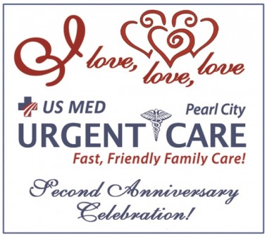 US Med Urgent Care Pearl City is celebrating their second anniversary February 14 – 21, 2014. The event theme is I Love US Med Urgent Care Pearl City and the public is invited to stop in and share in the celebration! There will be free refreshments and gifts, and everyone can register to win a Wellness Basket.