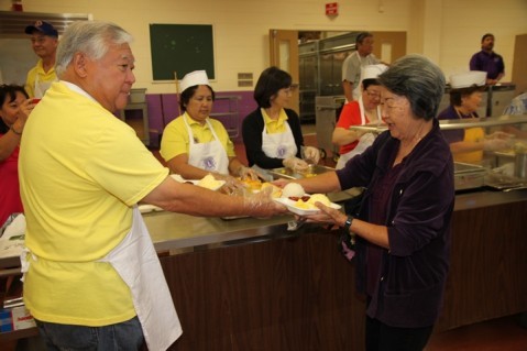 Senator Clarence Nishihara, who is also a Pearl City Lions Club member, helped serve up the hot