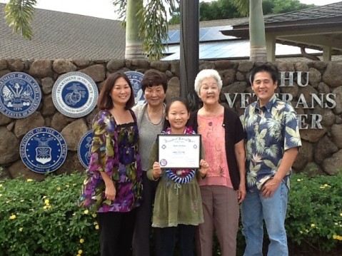 Caitlyn Pang (gr. 6) entered an essay contest sponsored by the Veterans of Foreign Wars.  She placed first in our district then advanced to the state level.