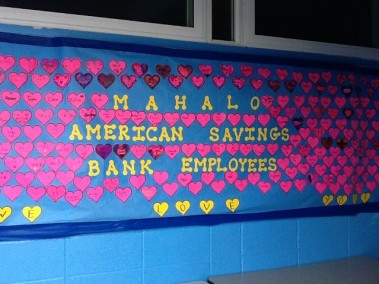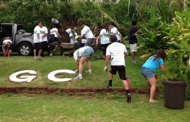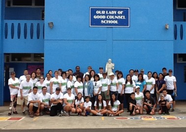 Shovels, rakes, garden hoes, paint brushes, and gloves; Oh my! On Saturday, March 29th, more than 50 volunteers made up of American Savings employees, family members and their friends came out in force to Our Lady of Good Counsel School to show their commitment; not only to giving back to the school community; but as a way of investing in the future of the students. Even through the deluge of rain, the helpers removed weeds and unwanted vewgetation, planted new ground cover and foliage, gathered and bagged trash and debris; repainted the four-square and hopscotch area; and just gave the school’s property a total “makeover”. The ASB “Seeds of Service” project is a yearly bank-wide initiative that began in 2006. Since then, it has become a state-wide venture, with projects on Oahu, Kaua’i, Maui, Moloka’i, and the island of Hawai’i. It encourages employees to team up with local schools and non-profit organizations, donating their time to help with landscaping, cleaning, restoration, and with other necessary neighborhood needs.