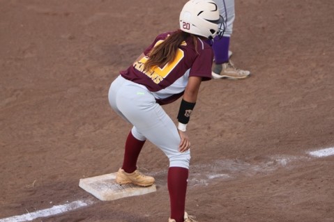 Bree Soma is pictured on third base after hitting a three RBI triple.