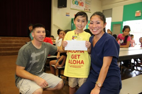 Manana Elementary School third graders Keela Chung and Rylan Ganeko were the first recipients of the 2014 Rotary Club of Pearlridge Dictionary 5000 Good Citizen Awards that were presented on Friday in a ceremony attended by the entire third grade class and their teachers in the school cafeteria.