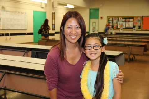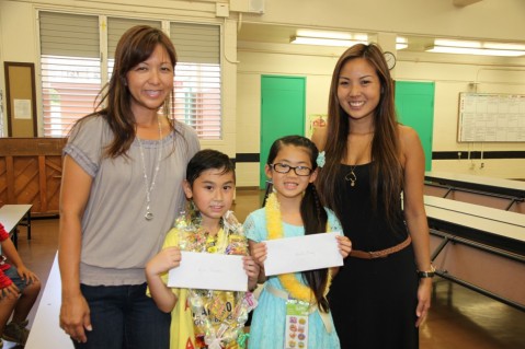 Keela and Rylan are pictured with their third grade teachers Mrs. Cynthia Nagamine (left) and