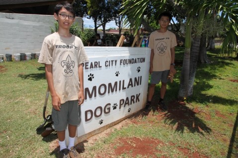 Mahalo to Sean and his fellow Troop 75 Scouts and support team for their efforts along with the help of the many community volunteers and Pearl City Foundation Executive Director Mr. Breene Harimoto and his staff for moving one big step closer to the much anticipated grand opening of the Momilani Dog Park.