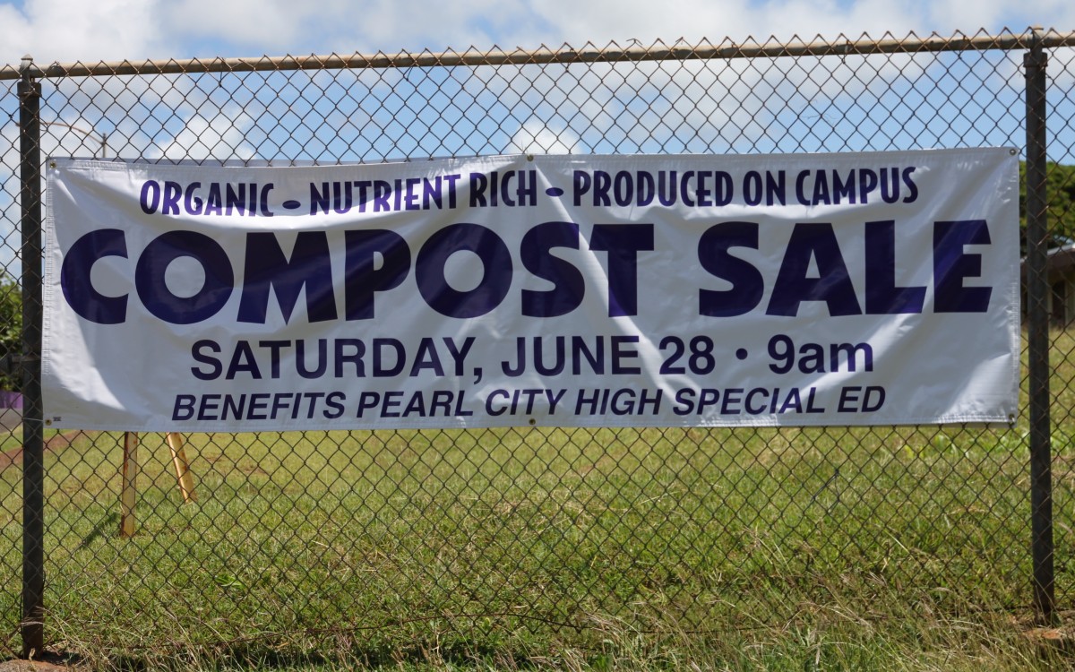 The first harvest of nutrient-rich cafeteria compost will be available to the public on Saturday, June 28, starting at 9am at the Ag Field on the Pearl City High School campus. Gardeners seeking fresh, local, organic, well-balanced living soil for garden, landscape, lawn, or potted plants can pick up a 5-gallon bucketful for a $10 donation to Pearl City High’s Special Education Department. Need a truckload? We’ll make a deal.