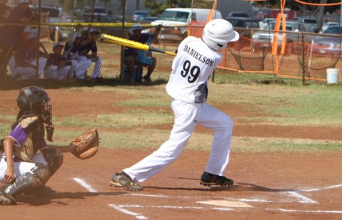Vance Oshiro connects with an RBI double that scored Chayse Danielson from