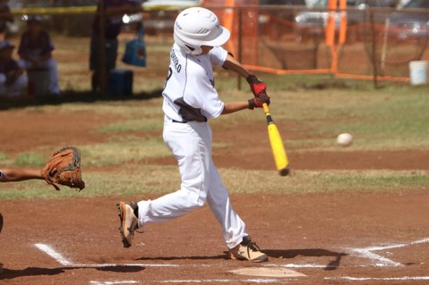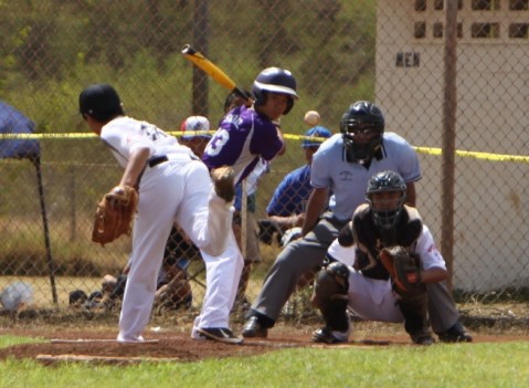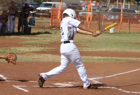 Koamana Rosa connects driving in Brandon Sarae from second base to put Pearl City on the