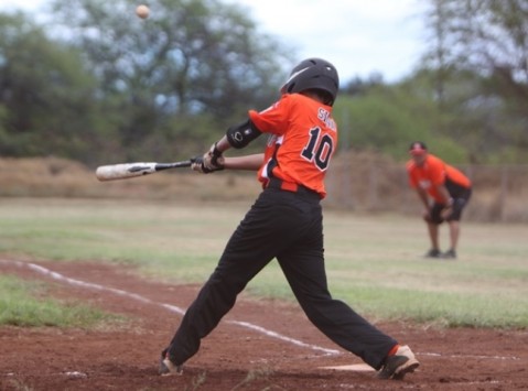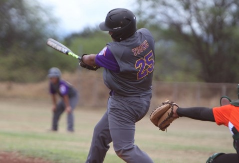 Ayzek Silva strokes a RBI single into right field scoring Makana Ontai from