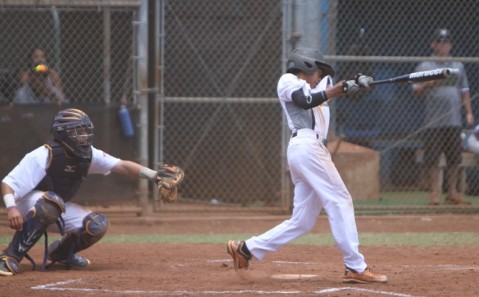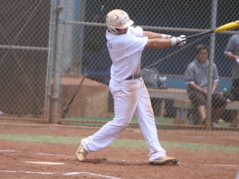 Waipio's Matt Aribal connects with a RBI single to right field in the bottom