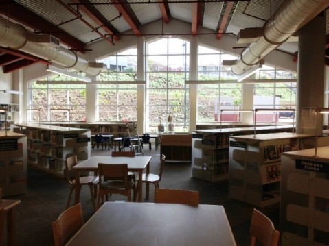 New Aiea Library interior view looking Mauka towards Aiea Heights.