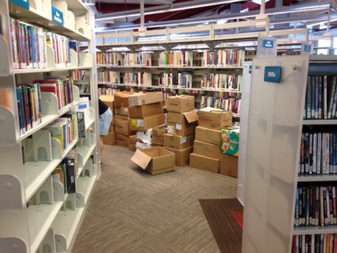 Community volunteers helped deliver dozens of boxes of books on Saturday, July 12, 2014