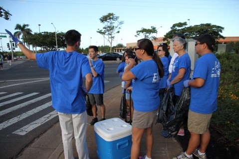 Honolulu City Council District 8 (Waipahu, Pearl City, Aiea) candidate Brandon Elefante and a group of enthusiastic campaign supporters volunteered their time Saturday morning to clean-up and beautify a stretch of Kamehameha Highway in Pearl City from Acacia Road near the Pearl Highlands Center to Waimano Home Road.