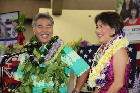 "We started this campaign believing in people and the people of Hawaii and we knew that if we reached out and touched enough people than we would have an opportunity to be successful," Ige said. "There are many, many more votes to be counted, but it is so energizing to be here this evening amongst all of you. When we started this 13 months ago, no one thought that we would ever get anywhere close to where we are today. There are many more votes to be counted, but I feel really good about it. I did want to thank Governor Ariyoshi and Governor Cayetano for believing in me. When I first met with Governor Ariyoshi he said the secret is coffee hours, and that's what we've been working on (said with a smile).