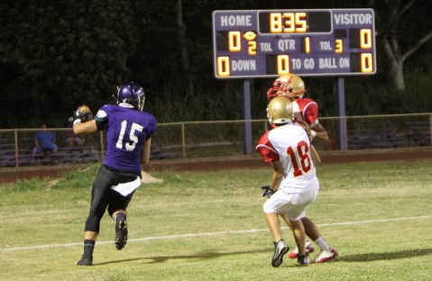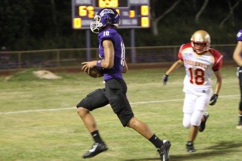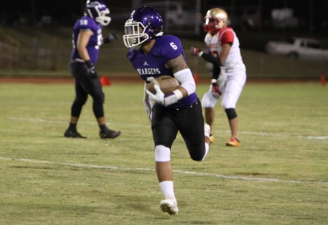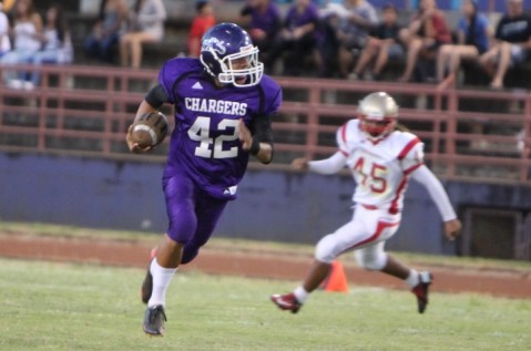 Pearl City senior running back Dominic Maneafaiga gave Chargers fans a snapshot of his versatility with the ball in his hands scoring three touchdowns by way of a 44 yard punt return, 2 yard touchdown reception, and a 32 yard run. Manefaiga also kicked in 3 PAT's and had a second quarter 90 yard punt return called back due to a penalty.