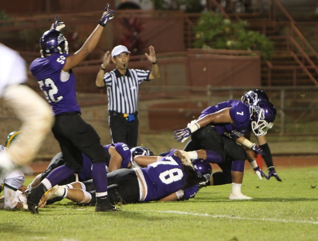 Kaimuki scored on a first quarter 8 yard touchdown pass from Bulldogs QB Tevita Lino to Nixon Siona and a second quarter 81 yard kick off return by Sean Noda.
