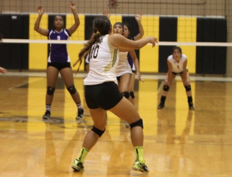 returning the ball in game two won by the Lady Trojans 25-21.