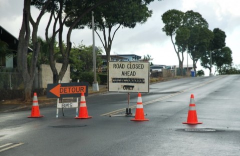 Traffic being detoured on Komo Mai Drive (eastbound) at Hookupa Street.