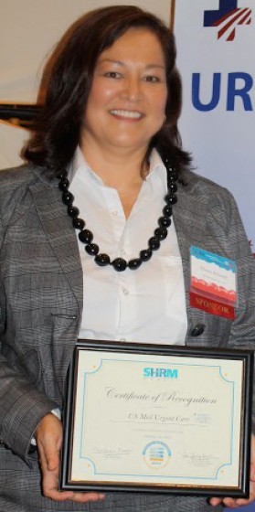 Donna Schmidt, CEO of US Med Urgent Care, received a Certificate of Recognition as a Finalist of the 2014 When Work Works awards at the Society of Human Resource Management (SHRM) Hawaii State Conference at the Sheraton Waikiki on Friday, October 10th, 2014. When Work Works is a joint partnership between Families and Work Institute (FWI) and The Society for Human Resource Management. SHRM and the FWI presented the awards. US Med Urgent Care was one of eight companies in the state of Hawaii who were recognized.