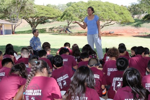 from the Rotary Club of Pearlridge at the schools Great Lawn stage on Thursday, October 16, 2014.
