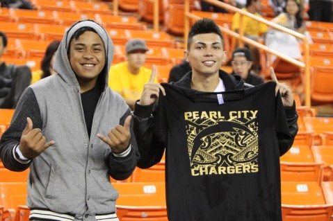 MyPearlCity.com would like to say GO CHARGERS! as Pearl City Chargers Head Coach Robin Kami leads his team against the Kapaa Warriors this afternoon in the first round of the HHSAA First Hawaiian Bank Division 2 State Football Championships at Vidinha Stadium in Lihue, Kauai. Kick-off is scheduled for 3:00pm.