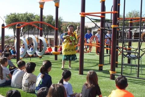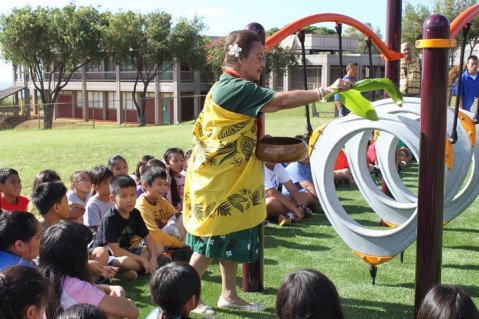 Momilani Elementary School's sparkling, brand new playground exercise station was blessed on Monday, November 17, 2014 in a ceremony performed by Kupuna Minerva Pang with the school's administration, staff, and students joining in on the blessing.