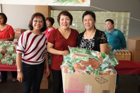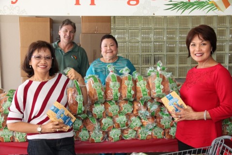 Employees from Mr. Kurisu's WKF, Inc. administrative offices, along with PCSC manager Ken Williams and his staff, distributed 800 loaves of Punaluu Bake Shop Sweetbread and 800 boxes of Original Macadamia Nut Shortbread Cookies in a gesture of appreciation to the merchants and their employees and also to wish them a wonderful and safe Holiday season.