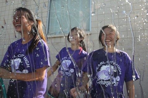 Fans and supporters of the Pearl City Lady Chargers varsity and junior varsity soccer teams showed up in force with their dirty cars and trucks yesterday in support of the girls annual car wash fundraiser held at Cutter Dodge in Pearl City.